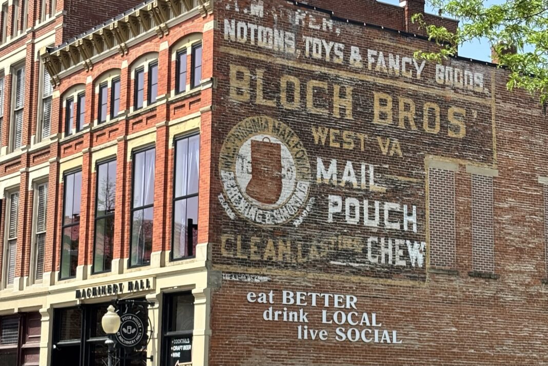 The mural, advertising Mail Pouch Chewing Tobacco, dates back to a once-common form of American advertising that spanned generations. Mail Pouch Tobacco, produced by the Bloch Brothers Tobacco Company beginning in 1879, became nationally recognized for its iconic barn and wall paintings.