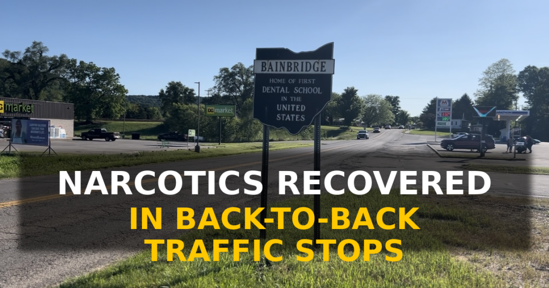 BAINBRIDGE, Ohio — Two separate traffic stops conducted by Ross County Sheriff’s Office deputies in the Village of Bainbridge resulted in multiple drug-related charges, arrests, and the recovery of narcotics and drug paraphernalia.