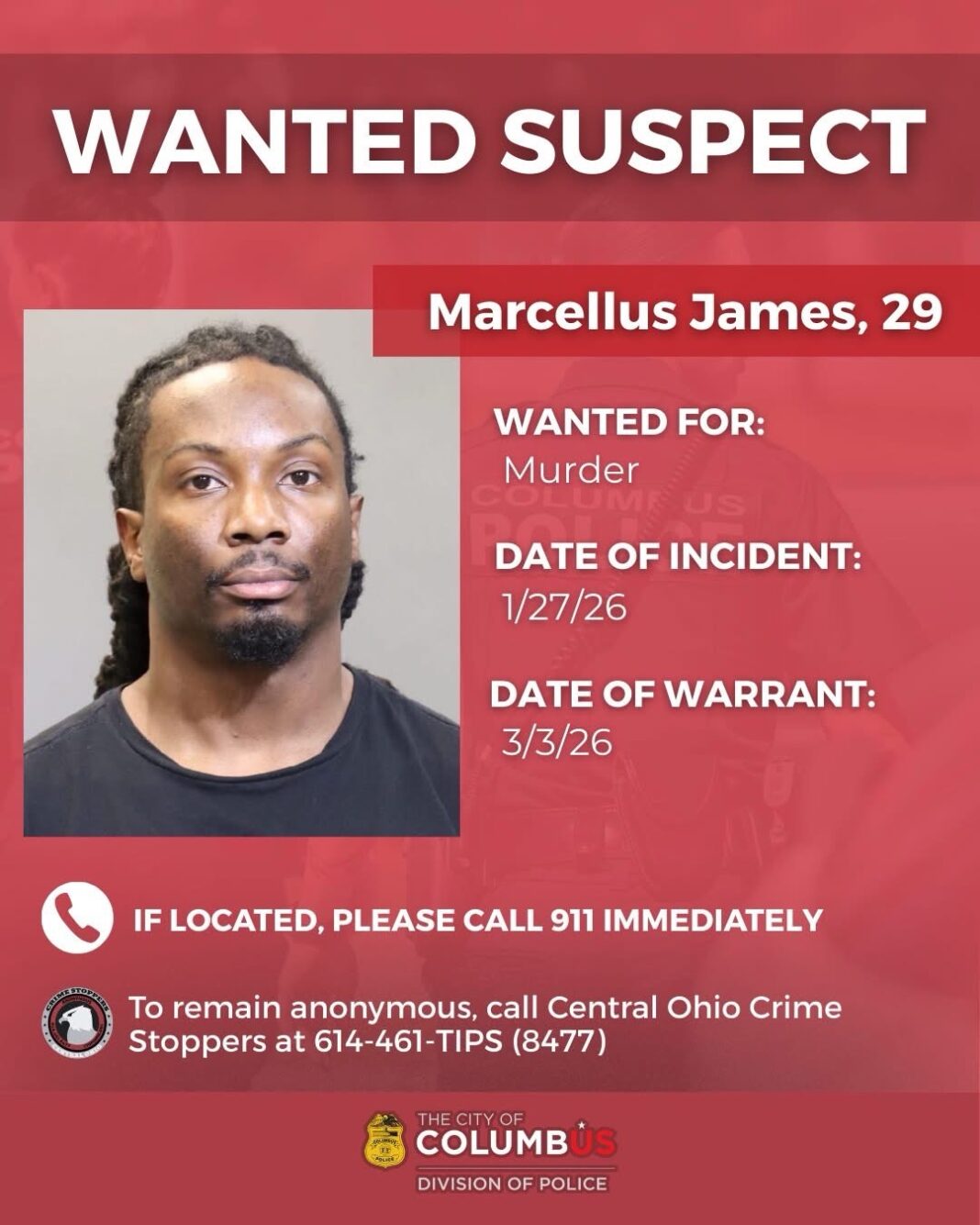 The Columbus Division of Police posted the following update on its Facebook page: “AN UPDATE TO OUR JANUARY 30 INFORMATION WANTED POST: Mr. Marcellus James has been charged with the murder of James Pettigrew Jr. We are asking for the public’s help in locating this at-large suspect who is considered armed and dangerous. If located, please call 911 immediately. […] Anonymous tips can be made to Central Ohio Crimestoppers at 614-461-TIPS (8477).”
