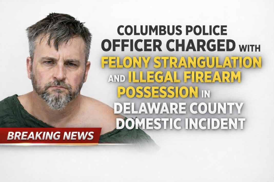 COLUMBUS, Ohio — A Columbus Division of Police officer faces felony charges after authorities say he strangled his live-in girlfriend twice, causing her to lose consciousness both times, and threatened her with a gun during a domestic dispute in Delaware County.