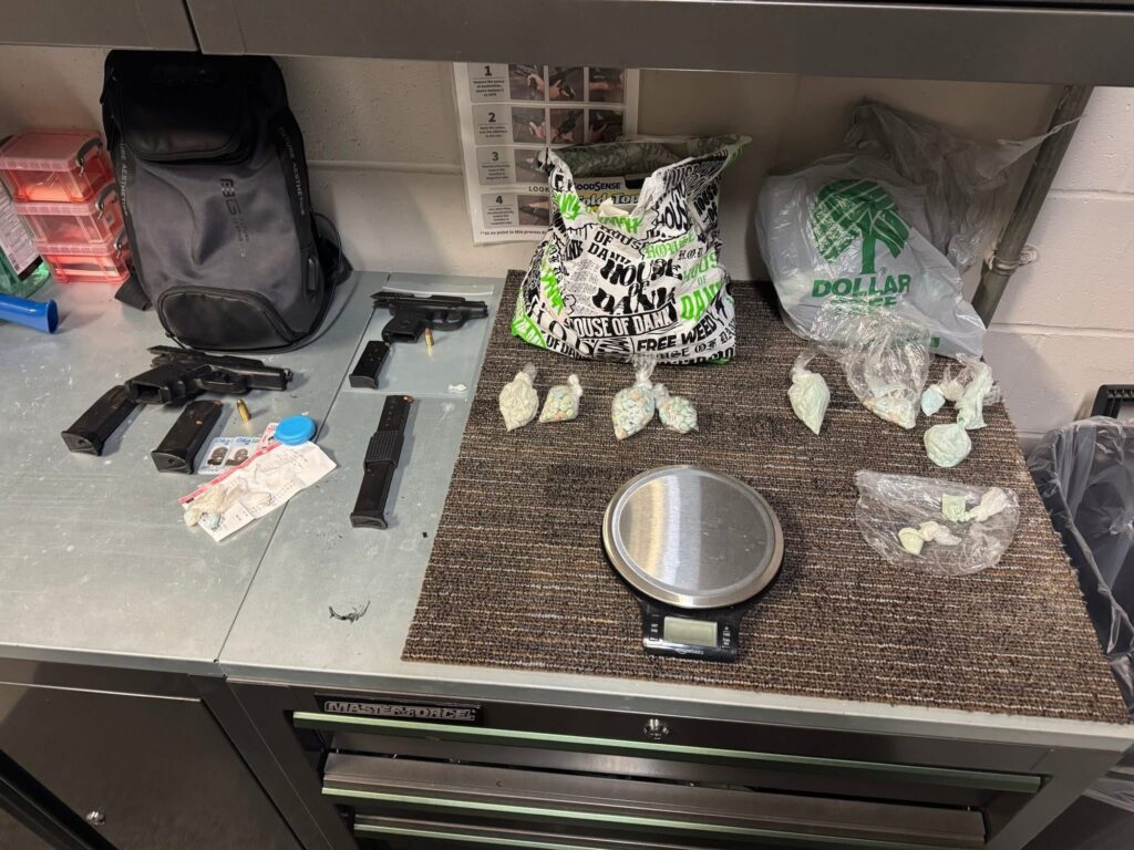 Officers recovered two handguns: a 9mm pistol and a reportedly stolen .380 caliber pistol. They also seized approximately 143 grams of suspected narcotics.