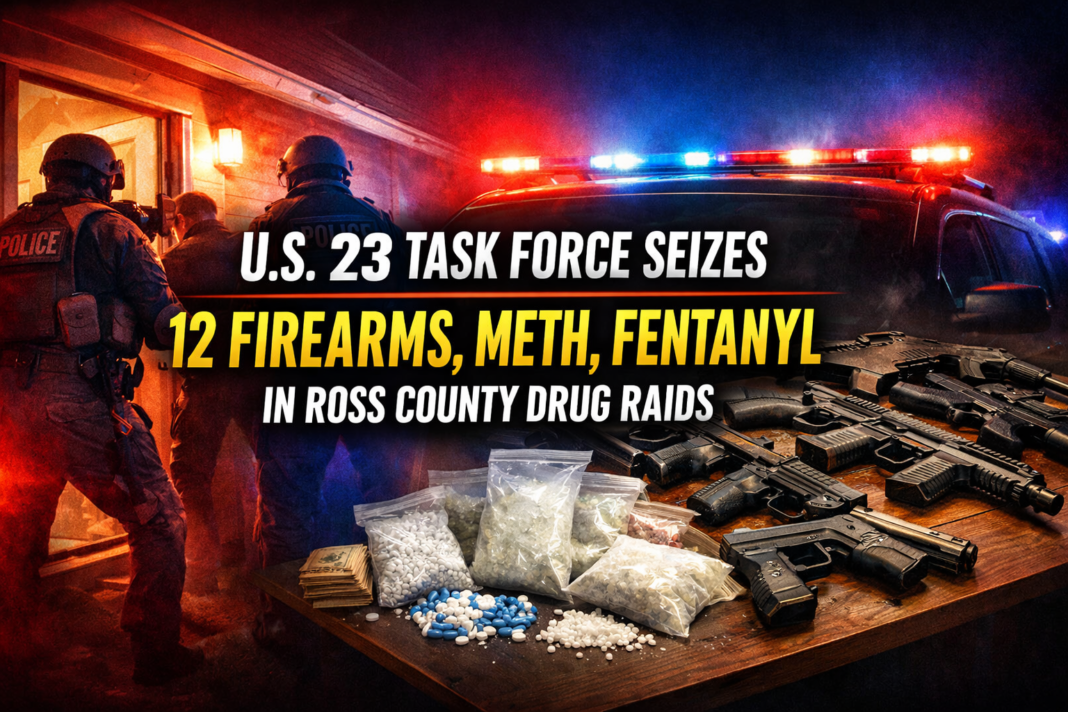 ROSS COUNTY, Ohio — The U.S. 23 Major Crimes Task Force executed three drug-related search warrants throughout Ross County this past week as part of ongoing proactive enforcement efforts targeting narcotics trafficking and illegal firearms within the community.